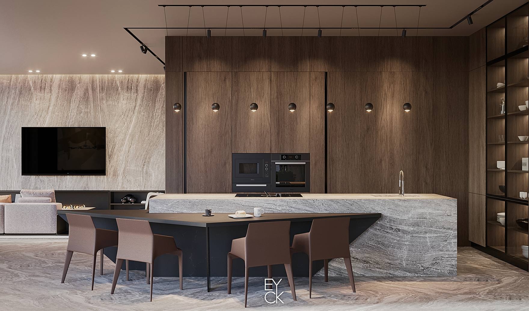 Am gândit bucătăria ca un loc de întâlnire, nu doar de gătit. Insula centrală devine simultan spațiu de lucru și loc pentru conversații. În jurul ei se strânge familia, se povestesc planuri, se râde. Designul bucătăriei nu e doar despre estetică, ci despre ritualurile de zi cu zi care dau viață unei case.